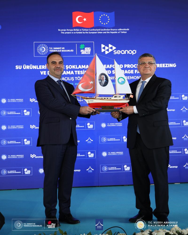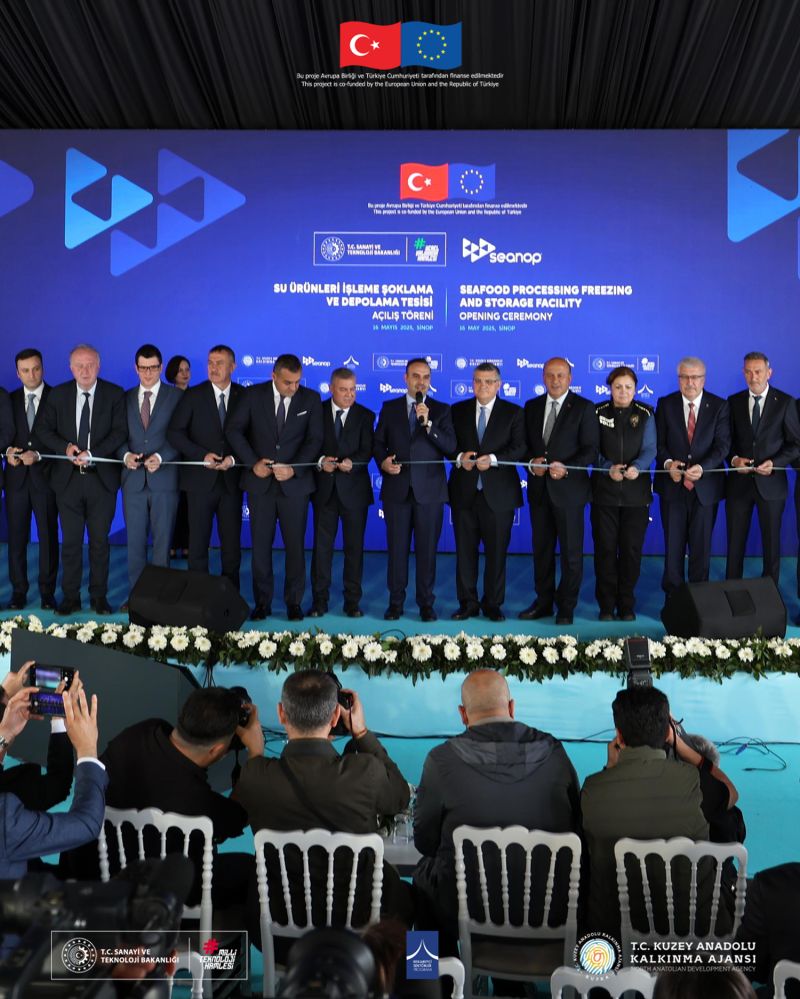 Avrupa Birliği ve Türkiye Cumhuriyeti’nin ortak finansmanıyla, T.C. Sanayi ve Teknoloji Bakanlığı tarafından yürütülen Rekabetçi Sektörler Programı kapsamında, Kuzey Anadolu Kalkınma Ajansı (KUZKA) tarafından hayata geçirilen SEANOP Su Ürünleri İşleme, Şoklama ve Depolama Tesisinin resmi açılış töreni 16 Mayıs Cuma günü gerçekleştirildi. Sayın Sanayi ve Teknoloji Bakanı Mehmet Fatih KACIR ve Sinop Valisi Mustafa ÖZARSLAN’ın teşrifleriyle gerçekleştirilen bu anlamlı törene kamu kurumları, yerel yönetimler, sektör temsilcileri ve proje paydaşları bir araya gelerek SEANOP’un bölgesel kalkınmadaki rolünü vurguladı. Katılım gösteren tüm misafirlerimize teşekkür ederiz.